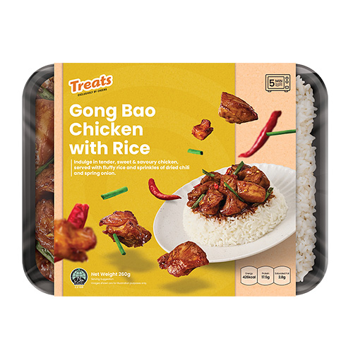 Treats Rendang Chicken with Biryani Rice READY MEALS Treats Treats Rendang Chicken with Biryani Rice • Spiced Chicken and potatoes in rendang sauce, served with biryani rice• Savoury and aromatic• Contains gluten, soy and nuts